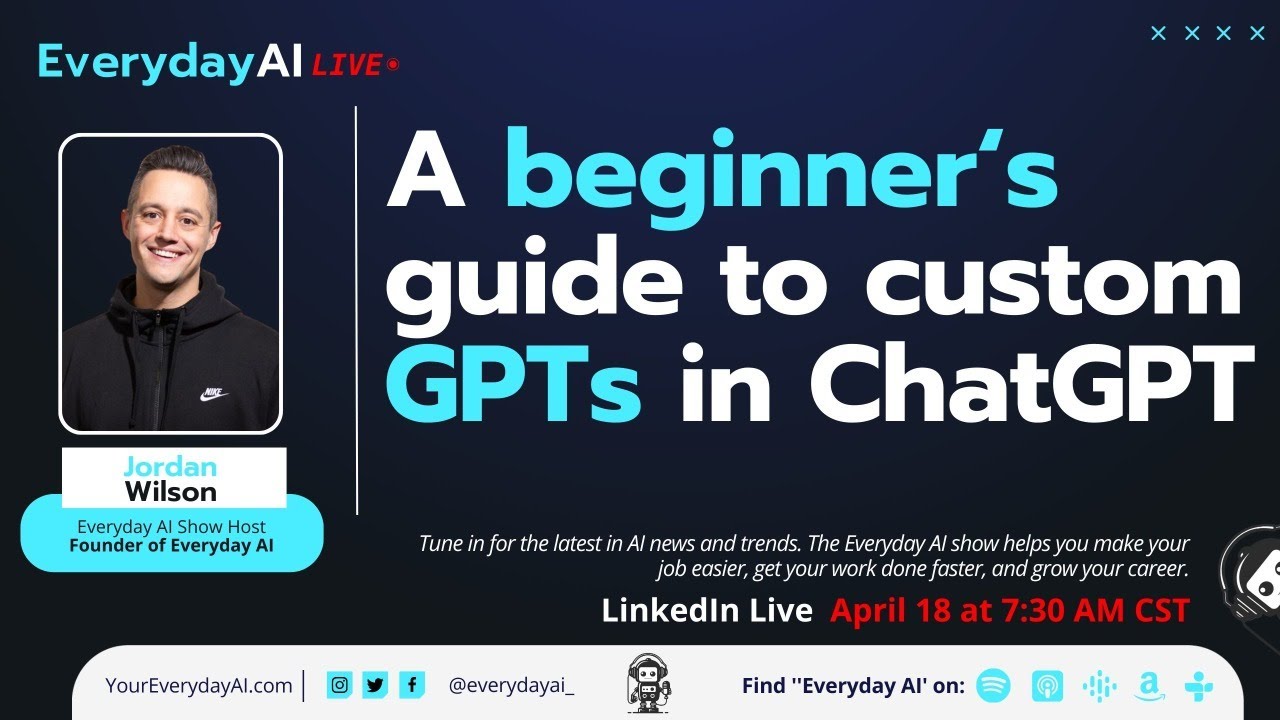 A beginner‘s guide to custom GPTs in ChatGPT — An Everyday AI conversation with Jordan Wilson VideoMining 0 Share FacebookTwitterGoogle+ReddItWhatsAppPinterestEmail Check on YouTube 0 Share FacebookTwitterGoogle+ReddItWhatsAppPinterestEmail